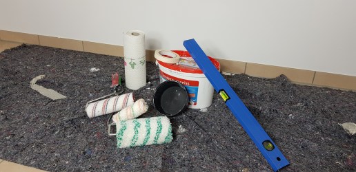 3. Fertig gemalert. Nochmal gewischt. Und das erste Möbelstück reingestellt. Und noch Weitere. Und das Hauptmöbelstück steht auch schon.