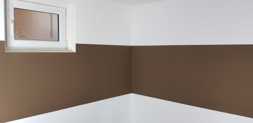 2. Vorbereitungen zum Malern. Ich werde alles weiseln und einen breiten braunen Streifen malen. Keiner hätte gedacht, was das für ne Arbeit ist. Dafür schauts jetzt schön aus.